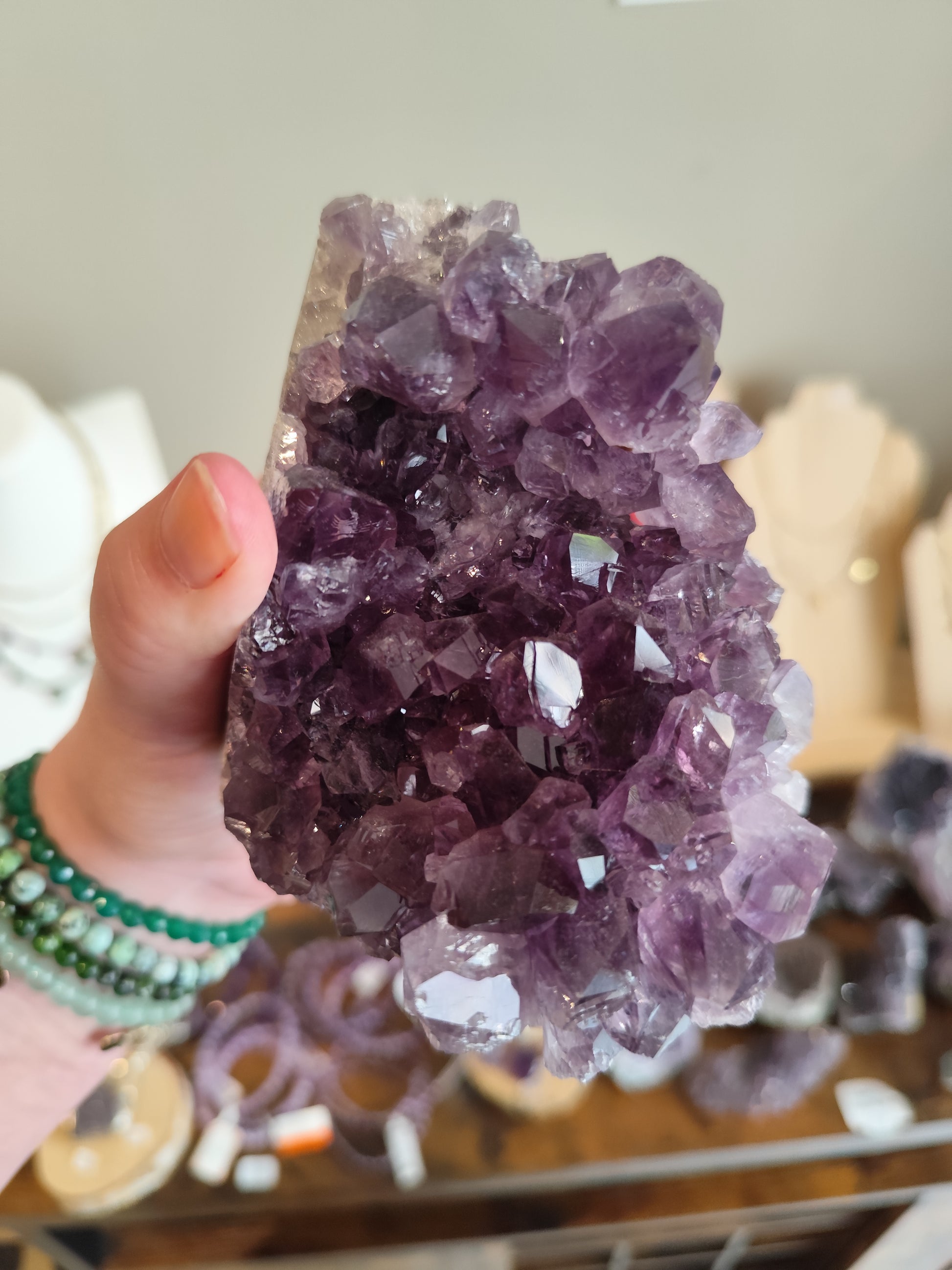 - Maison : Placer un morceau d’améthyste dans une pièce pour purifier l’ambiance et attirer la sérénité.