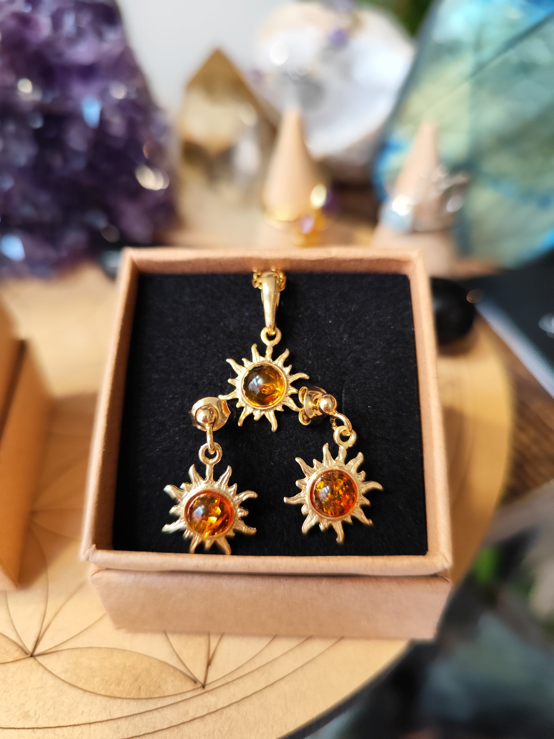 Parure Soleil Ambre ( Pendentif + Boucles )