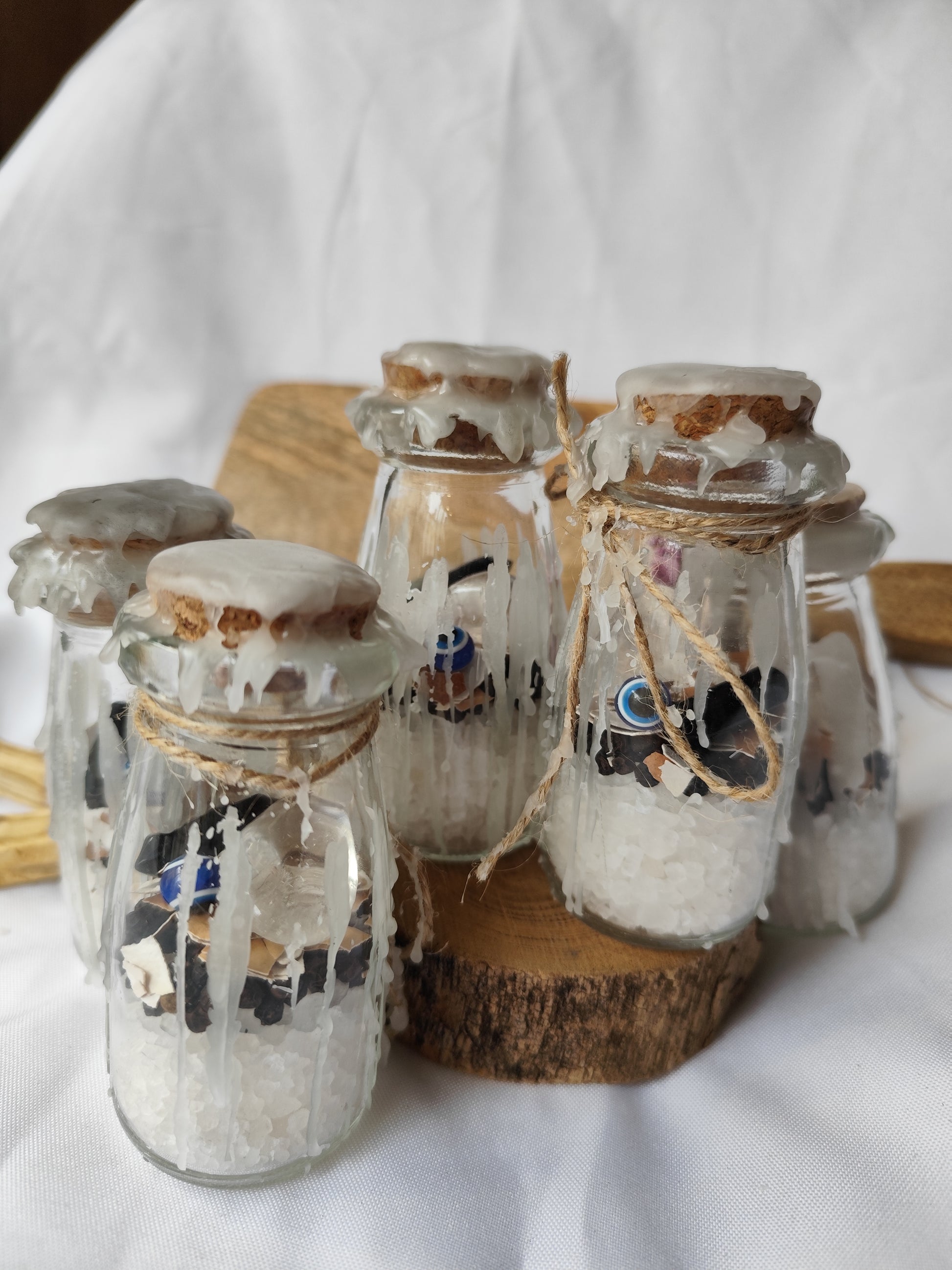 Un mélange d’éléments choisis avec soin — sel pour la purification, herbes pour la protection, symbole pour la force intérieure.